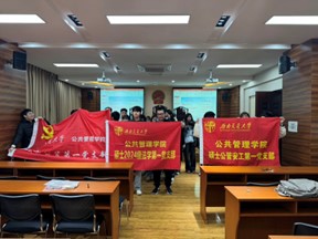 紧接着,硕士公管第一党支部书记分享了他们在提升支部党员政治素养方面的有效途径。他提到,支部通过定期组织政治理论学习会、邀请专家学者进行专题讲座等方式,不断提高党员的理论水平。此外,他还介绍了支部如何将党的理论与公共管理实践相结合,通过案例分析、政策研讨等形式,使党员能够更好地理解和运用党的理论指导实践工作。硕士公管安工第一党支部书记则探讨了在安全生产领域中,如何发挥党员的先锋模范作用。他分享了支部如何通过组织安全知识竞赛、安全技能培训等活动,提高党员的安全意识和专业技能。同时,他还介绍了支部如何与学院的科研团队合作,将党建工作与科研工作相结合,推动学院的科研成果转化,为学院的中心工作服务。