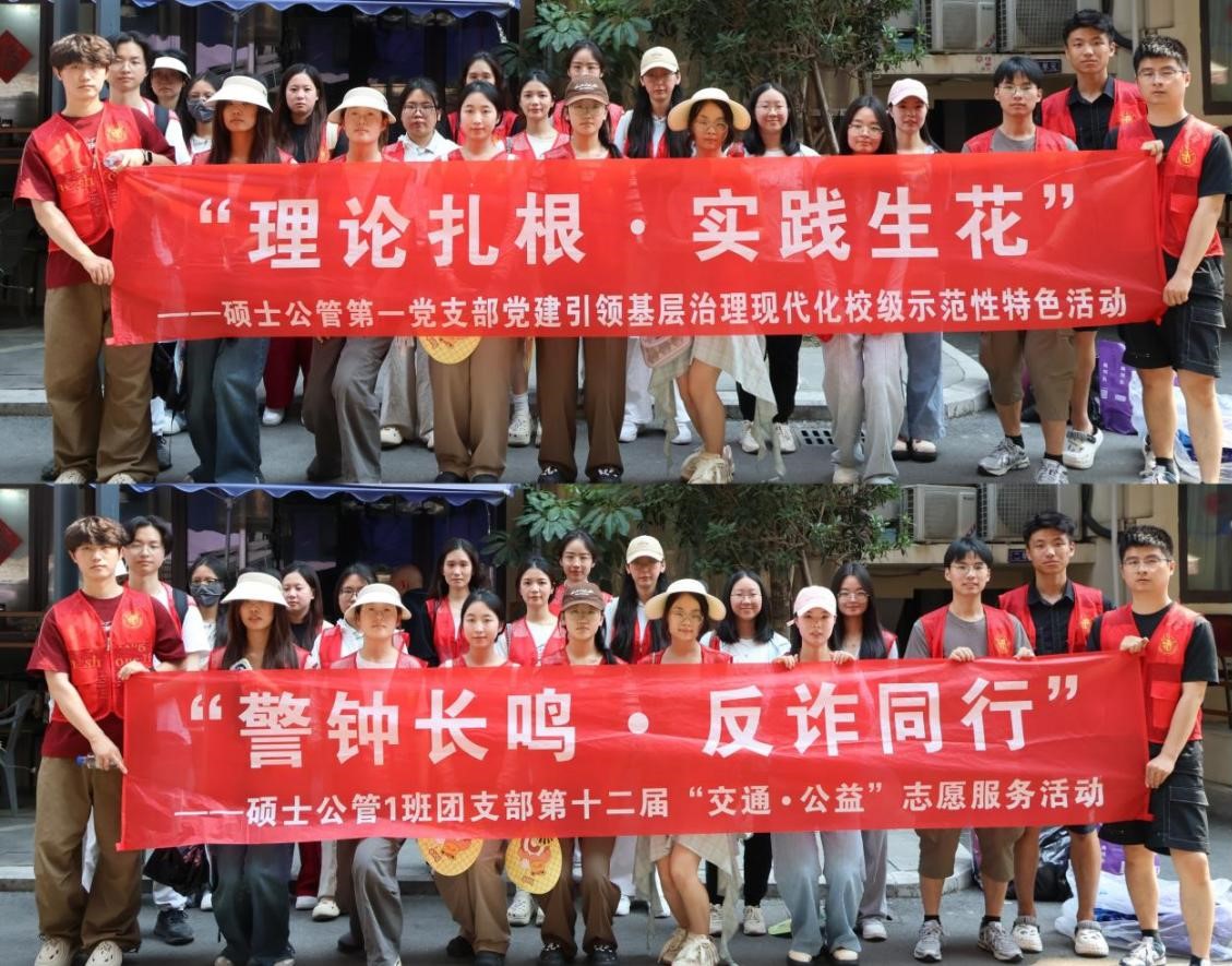 硕士2024级公管1班团支部联合马鞍社区顺利开展“理论扎根・实践生花”党建引领基层治理特色活动与“警钟长鸣・反诈同行”防诈宣传活动,形成党团服务、社区实践的平行联动模式。