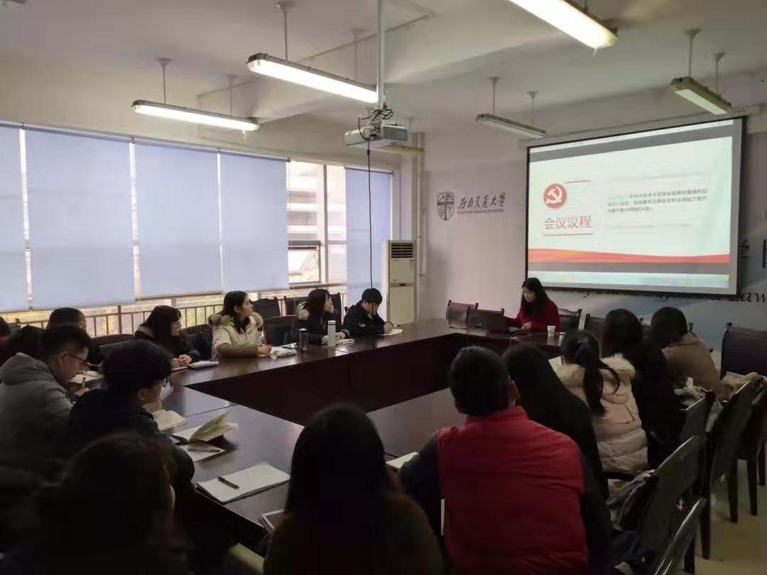 2019年11月29日下午1点,公共管理与政法学院本科第一党支部积极响应党中央号召、深入学习党的十九届四中全会精神,于X2401举行贯彻党的十九届四中全会精神专题学习会议,本次会议由公共管理与政法学院党委余小英副书记主讲,支部书记谢元桃同志主持。