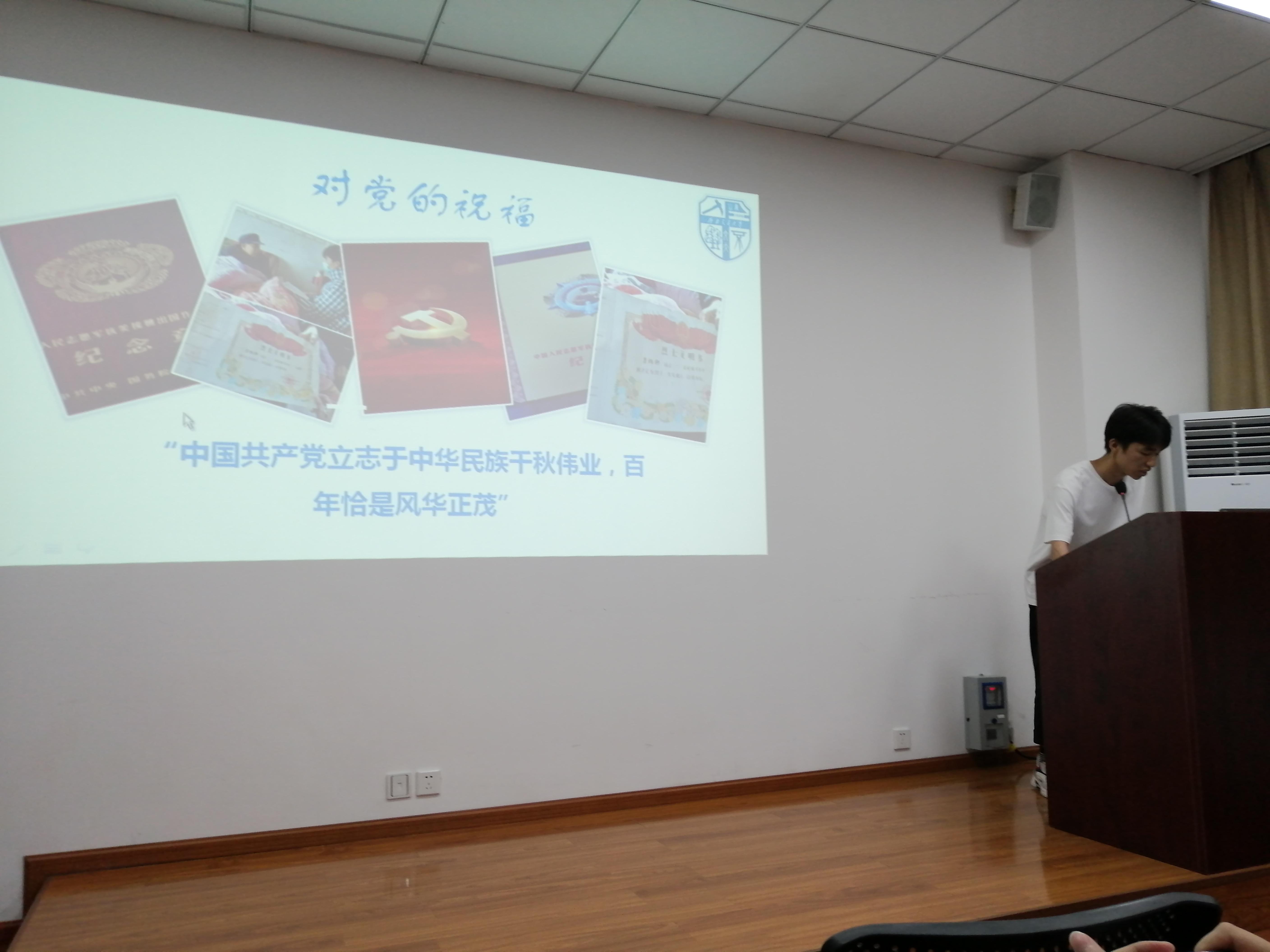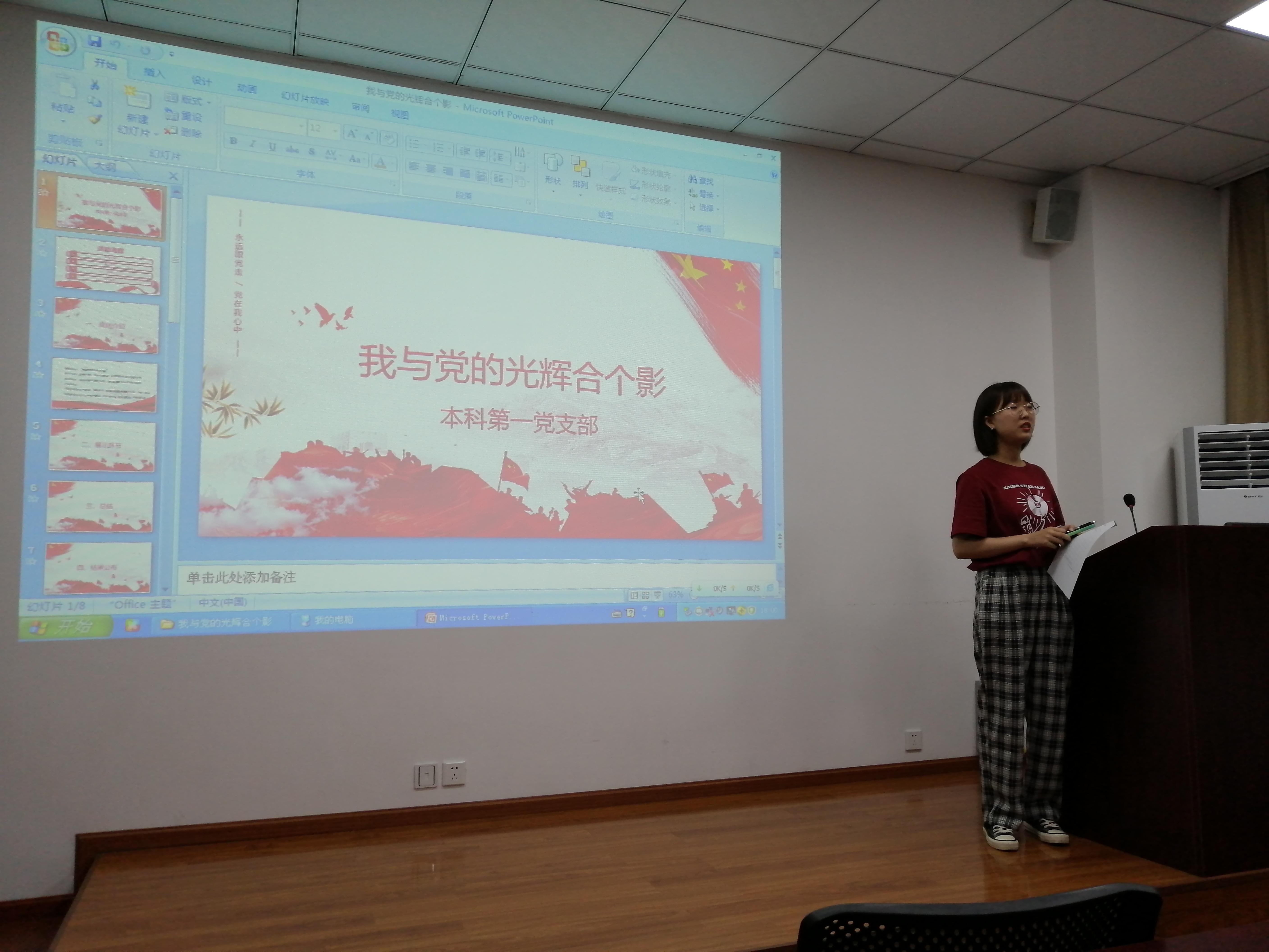 本科第一党支部在0号教学楼01103顺利开展“我与党的光辉合个影”主题党日活动,本次活动由支部书记刘燕同志主持,本次活动共有10名党员同学进行分享和讲述,10名入选的党员同志通过PPT或现场图片讲述的形式分享照片背后的故事以及对中国共产党建党100周年的美好祝福。