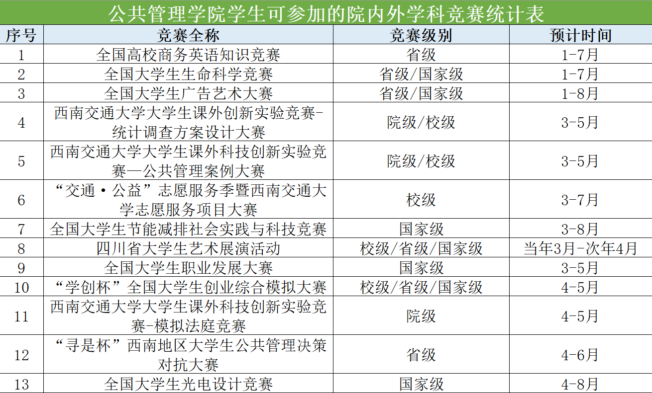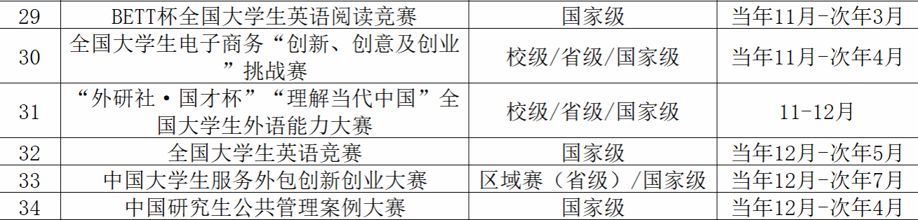 为进一步提升91毛巾哥 学生创新精神,增强创新创业能力和创新活力,促进大学生全面发展,根据学院历年主办承办和学院学子参与获奖的学科竞赛情况,现将91毛巾哥 学子全年可以参加的学科竞赛清单整理发布如下,供学院广大学子参考备赛。