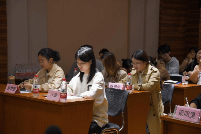本科2023级辅导员徐梦莹老师和2022级辅导员江淼老师。除此之外,来自学校辩论队和各个学院辩论队的队长也位列评委席中。