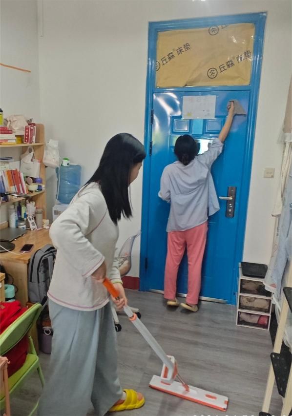 各班也自行组织开展宿舍卫生扫除活动。不仅是为了营造整洁的环境,更是为了让同学们体会劳动带来的成就感以及学会珍惜。在通过读书耕耘自身内心的同时,不忘劳动带来的耕耘。