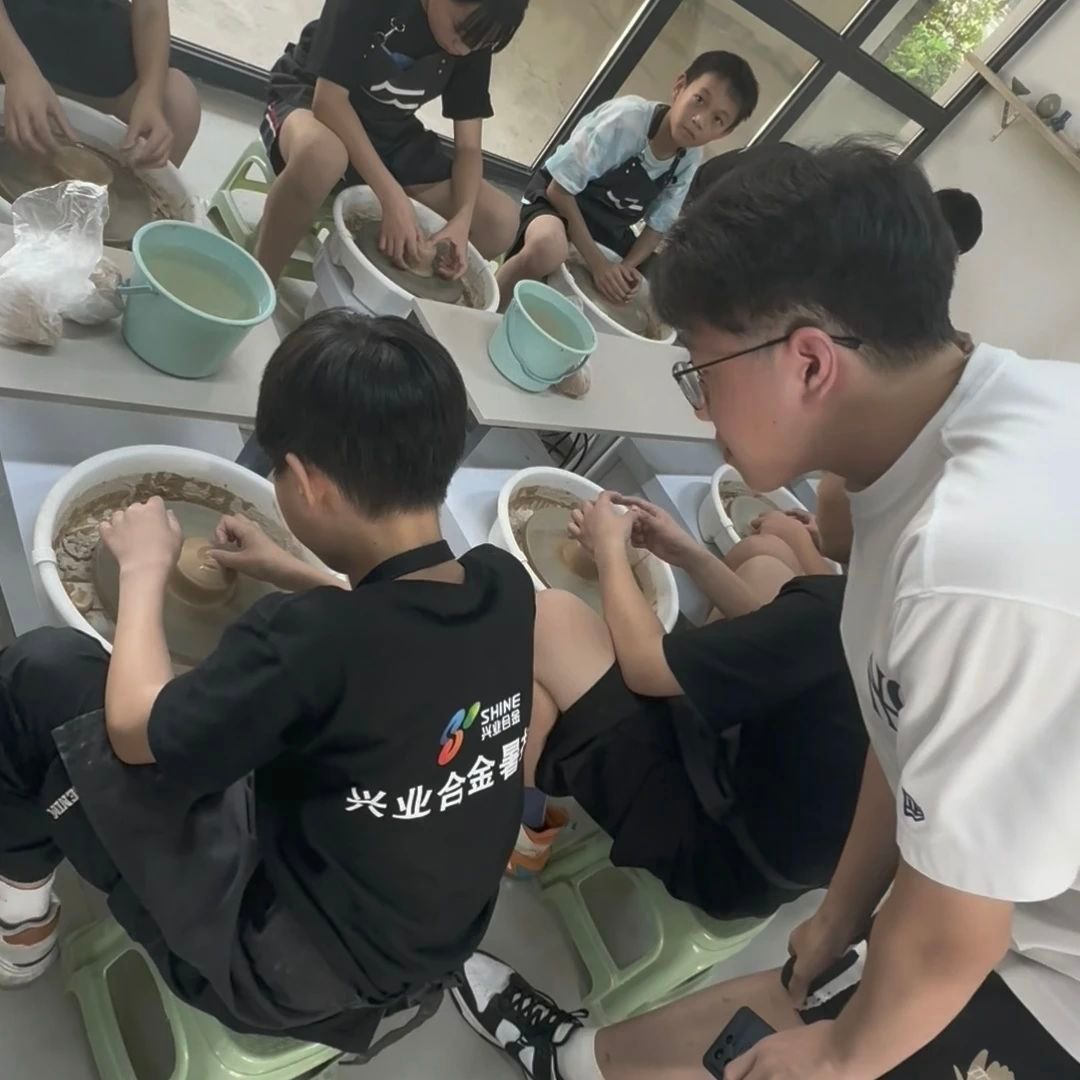 在传承园内,队员们不仅近距离观赏到了珍贵的青瓷藏品,还亲身体验了从取土、拉坯到上色的整个陶瓷制作流程,深刻感受到了越窑青瓷的魅力。同时团队成员还协助园区工作人员,带领前来传承园的青少年团队进行参观体验活动。