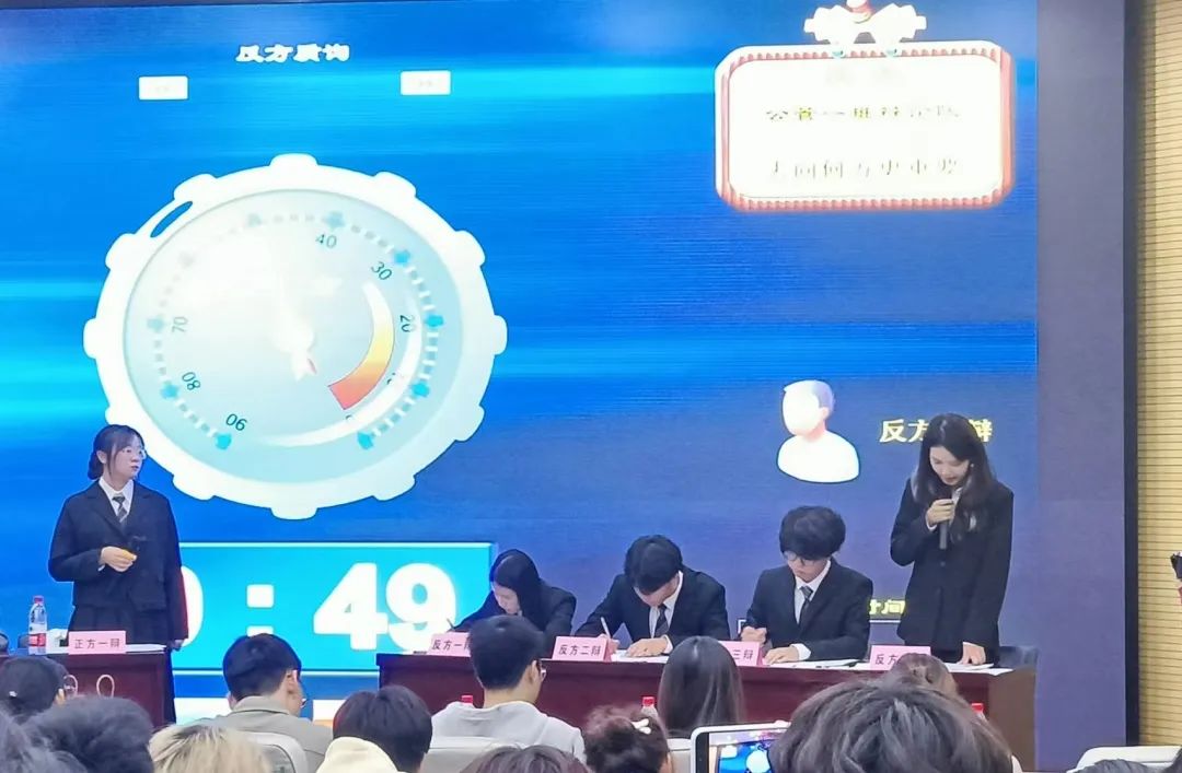 于2024年10月24日晚7点在0教0231教室举办了2024级本科新生辩论赛决赛。各支队伍以班级为单位,经过小组赛、半决赛的激烈竞逐,最终,政法联队辩论队和公管一班辩论队两支队伍顺利晋级决赛。