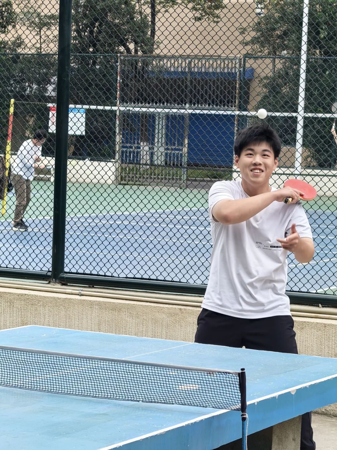 10月25日的新生乒乓球赛以男子单打和女子单打的形式展开。随着裁判一声哨响,比赛正式开始。发球方双脚稳稳站定,身体略微前倾,手腕一抖,球以极快的速度飞向空中,紧接着迅速下坠,接球方反应迅速,瞄准角度稳稳挥拍。双方你来我往,频频打出高质量回球。赛场高潮迭起,比分紧追不舍,小组赛在紧张而兴奋的气氛中进行了一轮又一轮。