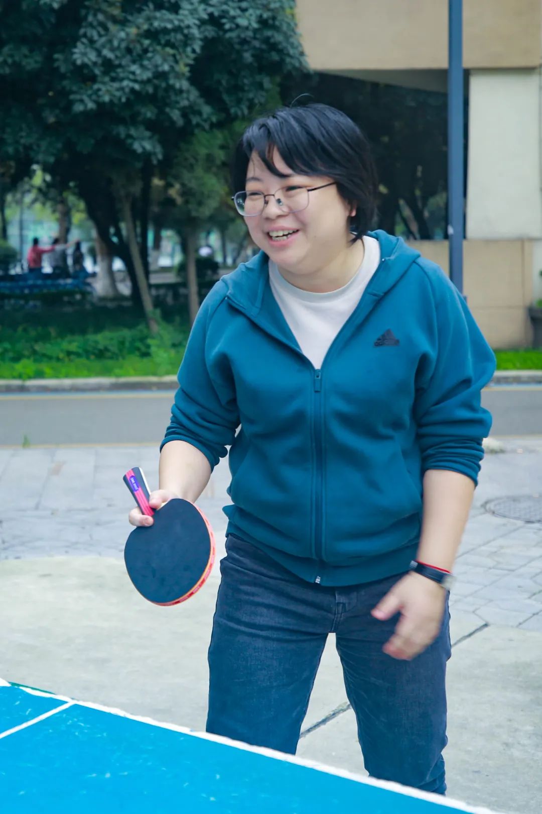在10月24日的师生友谊赛中,学院教职工代表和2024级新生代表相对而立,全神贯注。球桌上,小小的乒乓球如同被赋予生命,在空中飞速穿梭,每一次与球拍的撞击都伴随着清脆的“啪”声,激发出不同的旋转和速度,让比赛充满了变数与惊喜。双方步伐灵活,或快速侧移,或迅猛扣杀,每一次攻防都展现着高超的技巧与战术。小小的乒乓球传递着浓浓的师生情,拉近了彼此的距离。