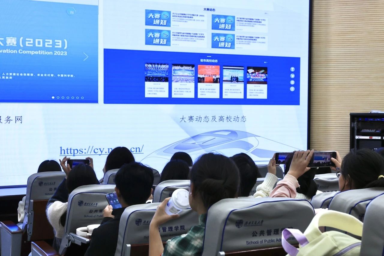 学子的专业性质,对“大挑”的红色专项活动和“小挑”的社会民生方面进行了更为详尽的讲解。除介绍了它们的形式、评分具体权重、呈递要求和其他注意事项,王老师还提供了赛事信息的获取渠道,鼓励学子们发挥主观能动性了解更多相关赛事细节。