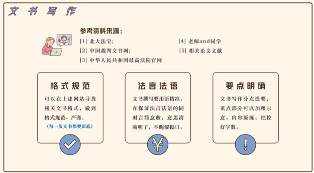 随后,杜星瑶同学详细梳理了模拟法庭的赛制流程与组队分工要点。针对初赛文书写作,她总结了民案与刑案交替出现的规律,并列举了各类文书具体的提交要求;复赛阶段则强调竞争机制,她提醒选手要尤为注重庭辩表现。在团队协作方面,提出“能力互补”原则,呼吁队员共同熟悉证据材料,避免“单点依赖”。最后,详细介绍文书撰写技巧,帮助同学们快速了解并初步掌握好写作规范的要求。