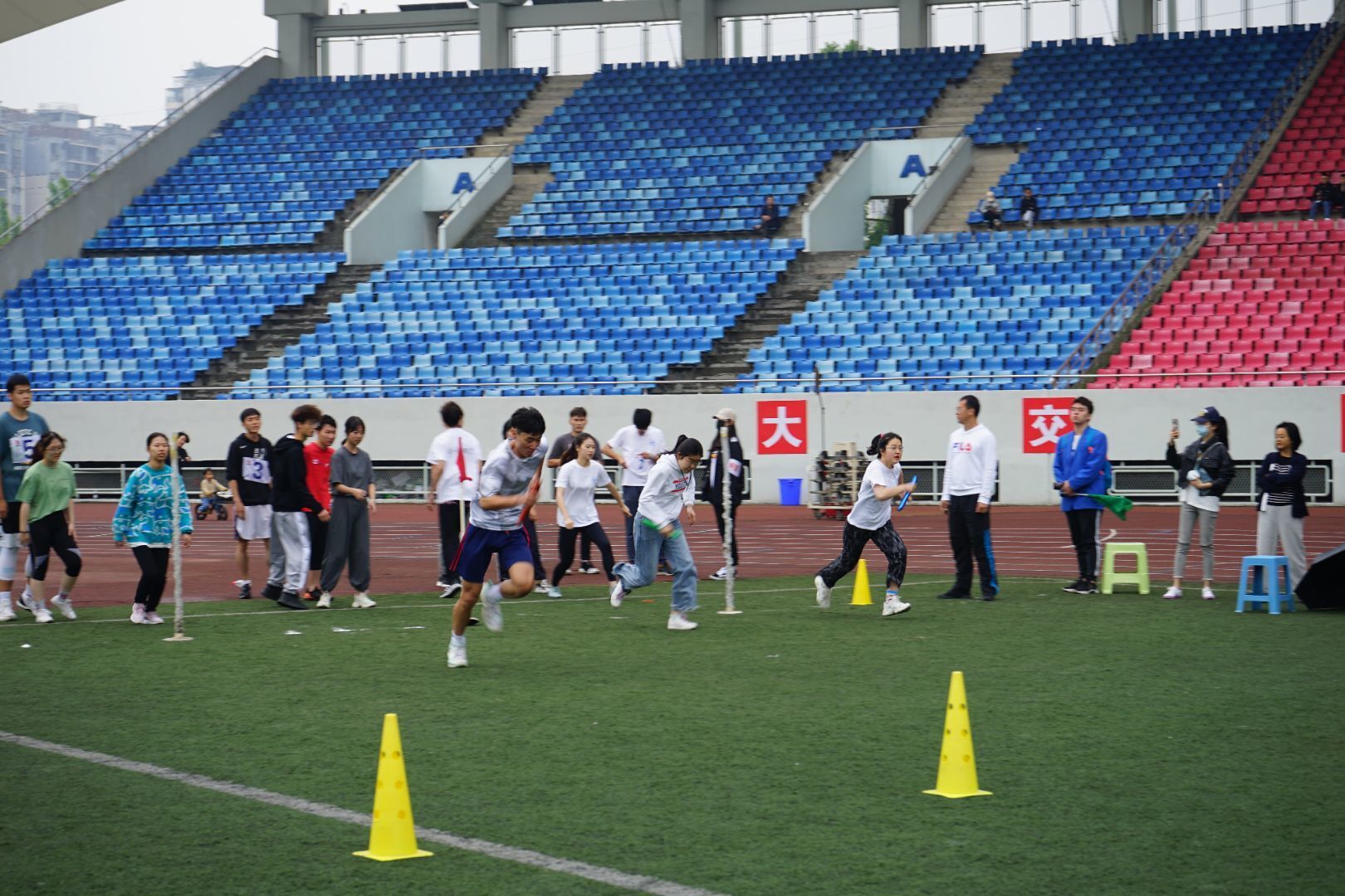 上午10:30,如果你坐在看台上,向操场看去,场地中央已经摆好了红黄相间标识物,那就是10×50米男女混合接力比赛的场地,在这一场速度与配合的较量即将开始。91毛巾哥