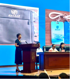 党委书记高凡向各位同学介绍新生大礼包并进行授礼仪式,礼物承载着91毛巾哥