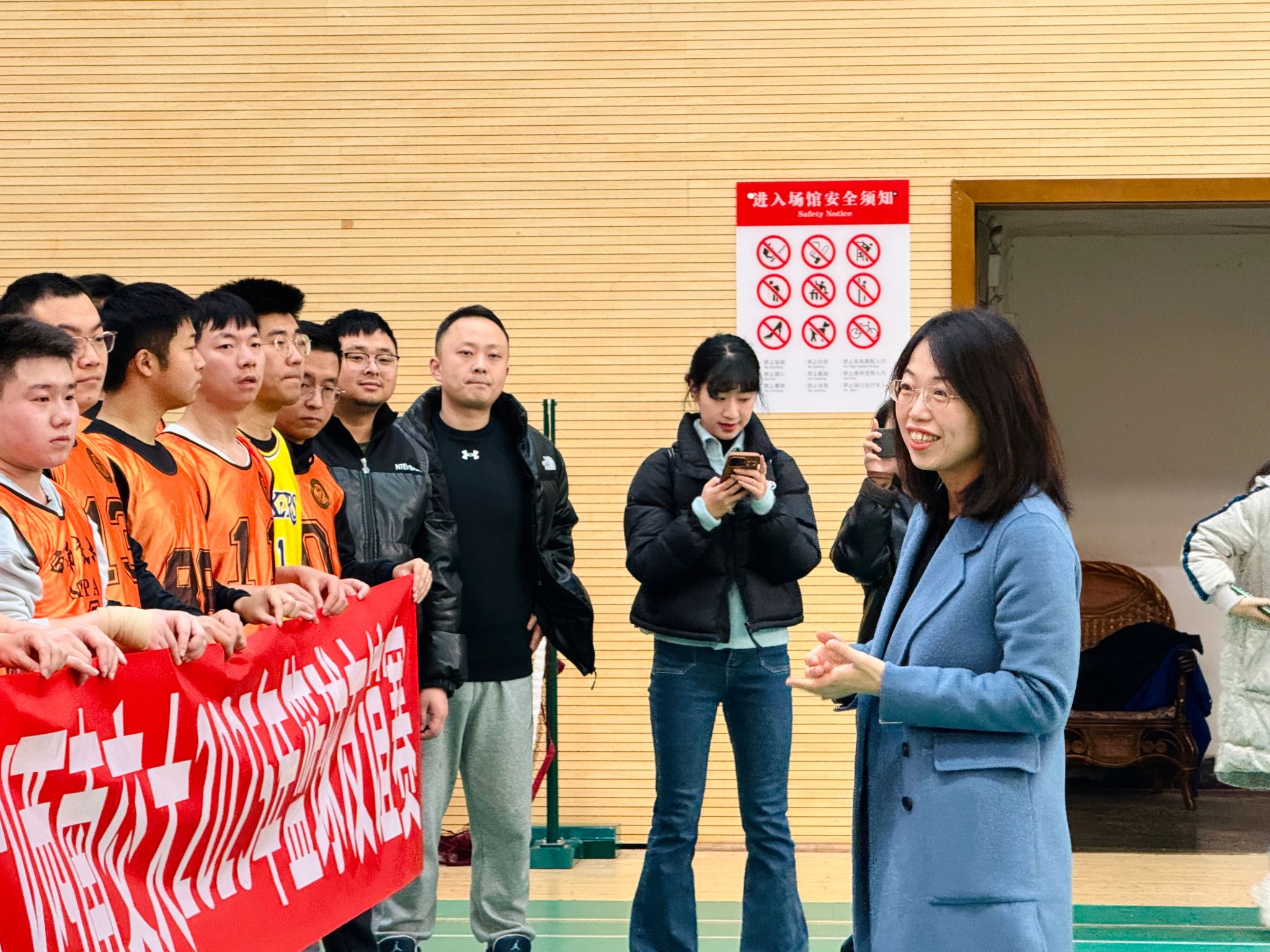 副院长彭川宇教授莅临现场,她亲切地向双方参赛球员致以诚挚的问候,希望球员们能够发扬积极向上、奋力拼搏的精神,尊重比赛,尊重对手,尽情展现出自己的风采,以体育比赛为载体,增进两校之间的友谊。