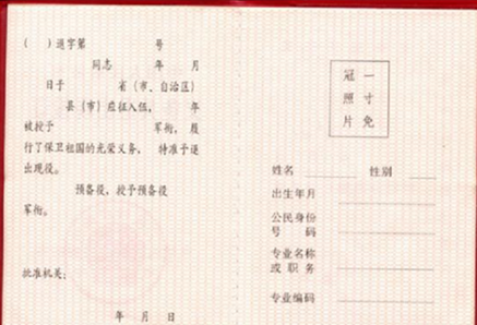 《退出现役证》示例