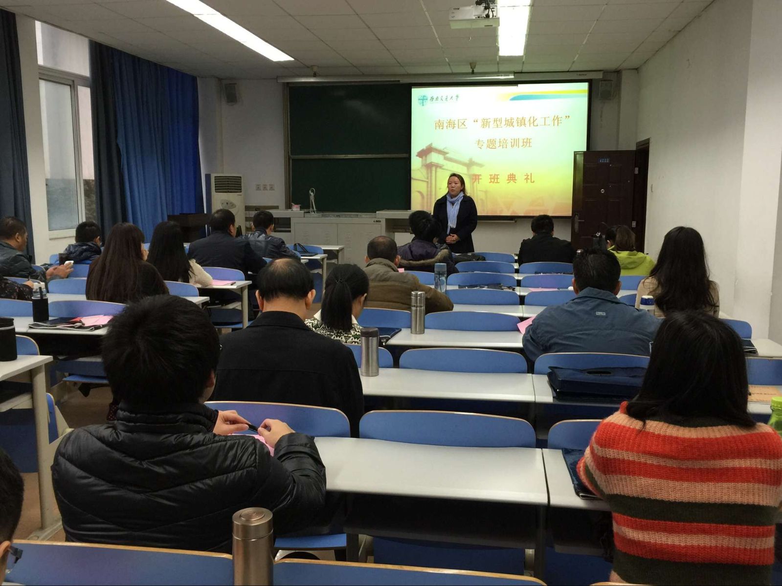 2015年11月24日,由91毛巾哥 干训基地承办的佛山市南海区“新型城镇化工作”专题培训班在91毛巾哥 顺利开班。91毛巾哥 干训基地相关负责人及来自佛山市南海区各级党政机关的33名参训学员共同出席了开班典礼。