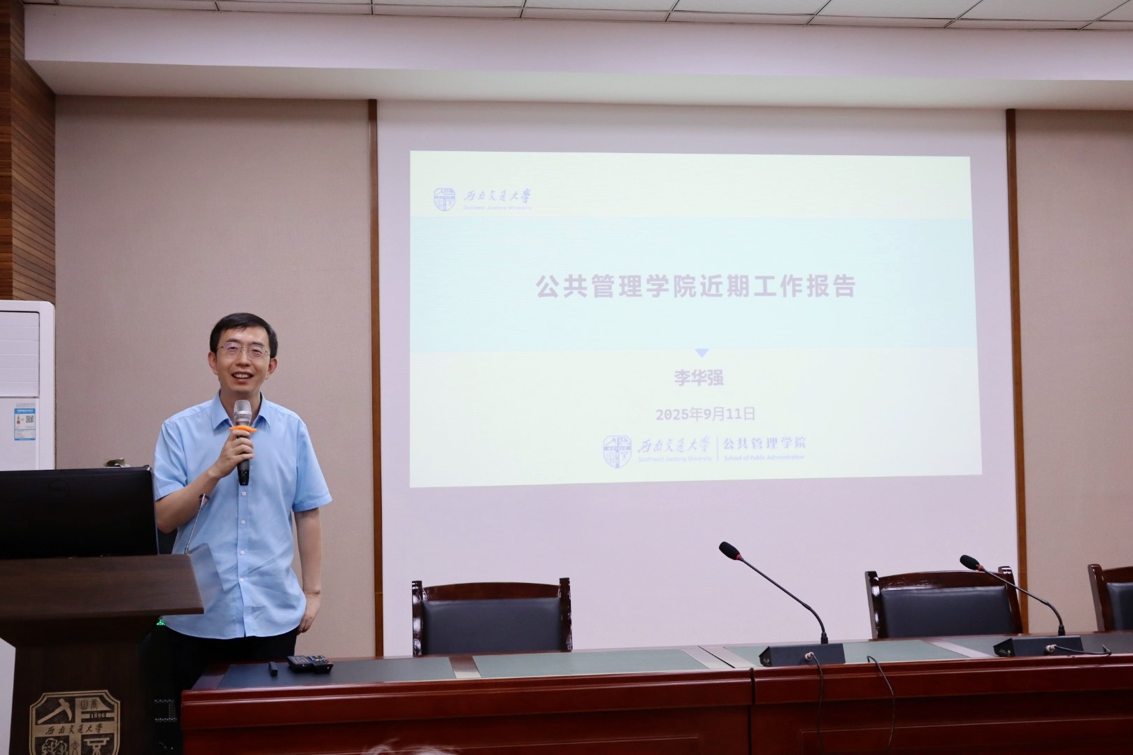 近期工作报告,报告系统回顾了过去一年学院在党建及思想政治工作、师资队伍建设、学科专业建设、人才培养、科学研究、学生工作、管理服务等方面取得的显著成效。他指出,学院将以“十五五”规划为引领,分“三步走”提升学院整体实力,持续优化人才引进和财务报销流程,全力推进公共管理博士点申建。