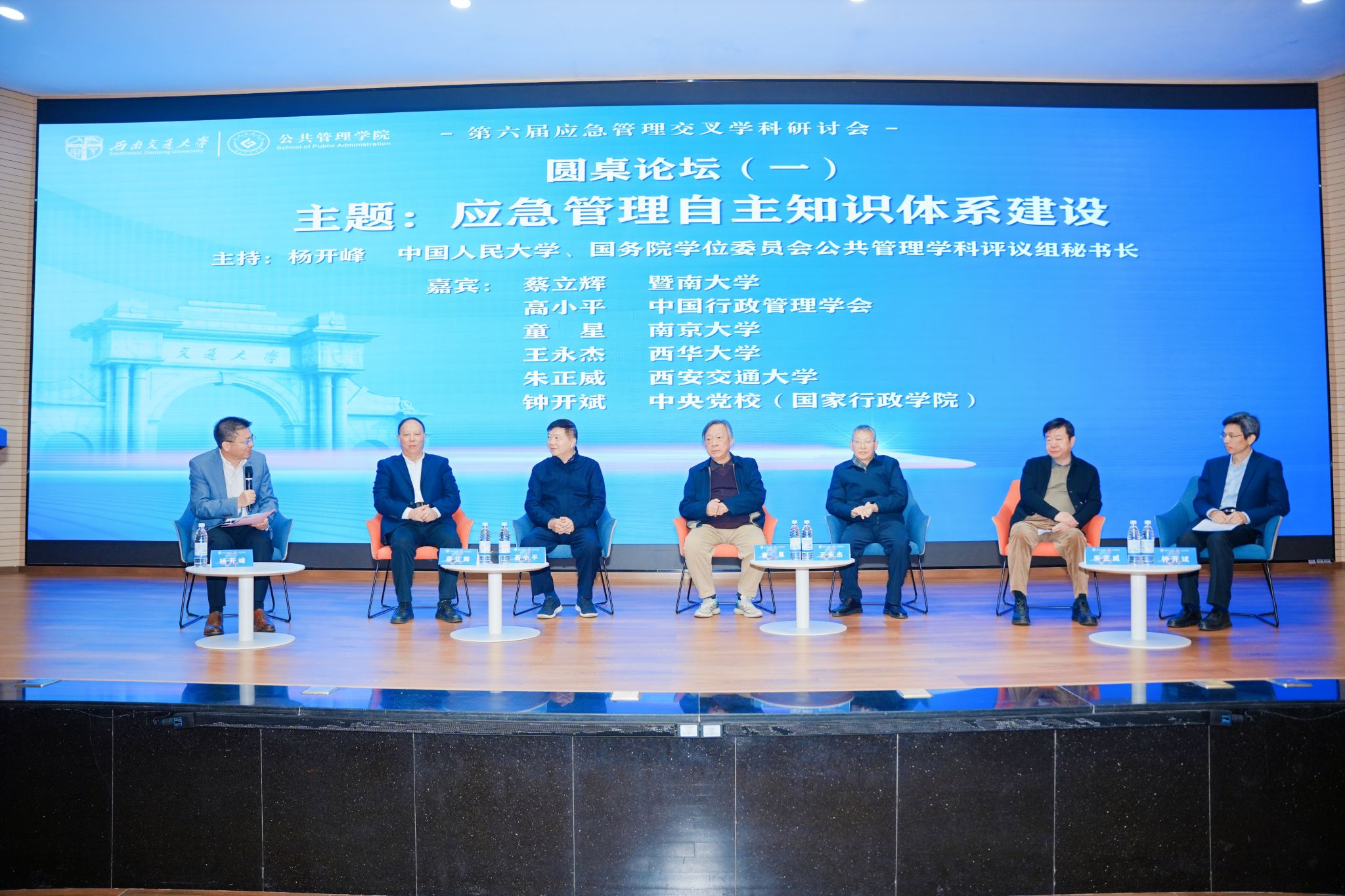 主旨报告结束后,大会进入“圆桌论坛”环节。圆桌论坛(一)围绕“应急管理自主知识体系建设”主题,由中国人民大学杨开峰教授主持。南京大学政府管理学院童星教授,中国行政管理学会高小平研究员,西安交通大学公共政策与管理学院朱正威教授,暨南大学应急管理学院蔡立辉教授,西华大学副校长王永杰教授,中央党校(国家行政学院)钟开斌教授围绕应急管理自主知识体系建设展开深入讨论,认为应急管理自主知识体系建设既需立足我国历史文化、时代需求,能够解释中国应急管理实践;也要积极形成国际对话,开放共享,形成人类共同的应急管理知识体系。应急管理自主知识体系包含了常识知识、专业知识以及跨学科知识。进一步提出要处理好应急管理自主知识学术发展与高校学术绩效考核体制之间的关系,鼓励更多具有“问题意识”的自主知识体系研究成果。