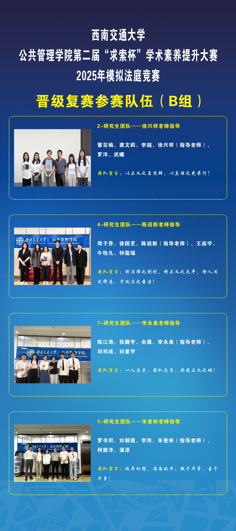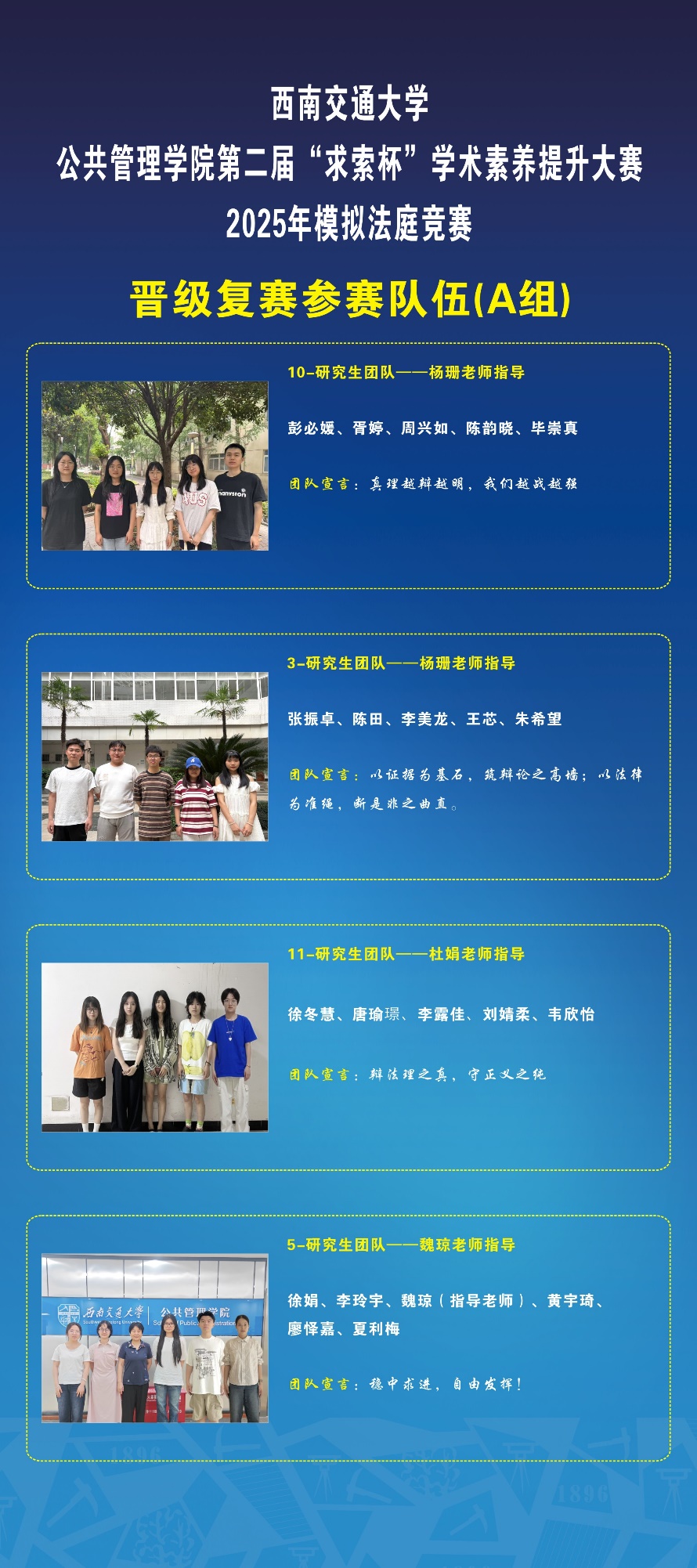 研究生组成共11支参赛队参加了本次模拟法庭竞赛。在初赛中各参赛团队根据竞赛案例案卷材料,提交了包括民事起诉状、民事答辩状、代理词、判决书等司法文书,由青白江区人民法院三位法官进行匿名评审,8支参赛队成功晋级,现通过抽签方式,分为A、B两组展开复赛。现对模拟法庭竞赛复赛赛事安排如下: