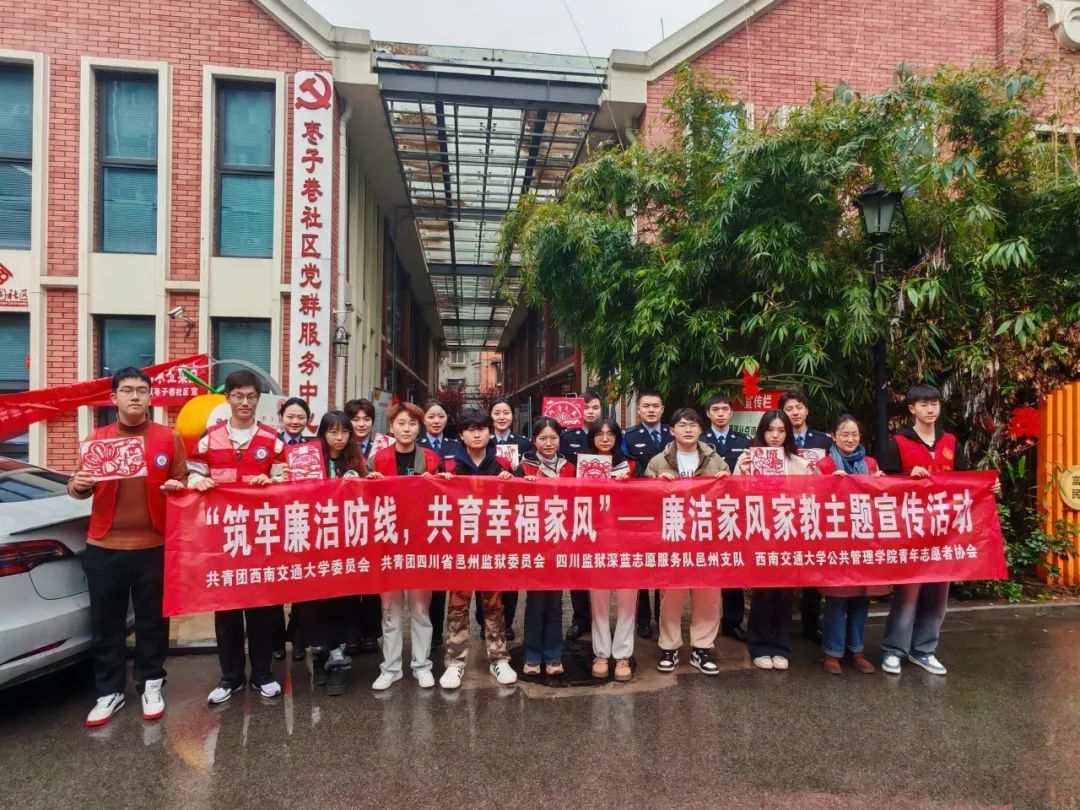 青年志愿者协会联合四川监狱深蓝志愿服务队邑州支队在成都市金牛区枣子巷社区内举办“筑牢廉洁防线,共育幸福家风”主题宣传活动,以实际行动弘扬廉洁文化、普及法律知识。